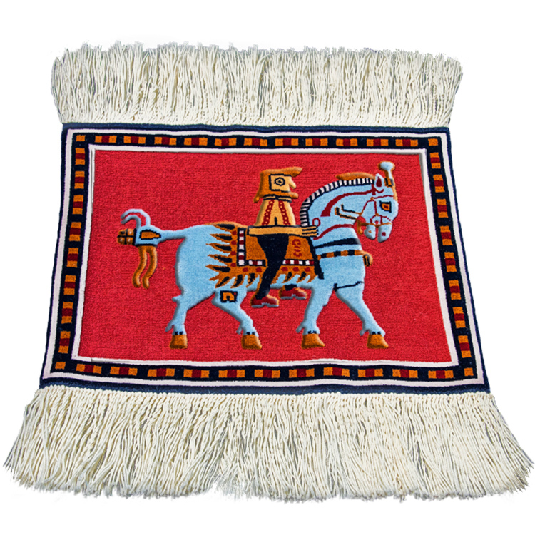 Задолго до нашей эры на территории Горного Алтая процветала древняя Пазырыкская культура. В наше время в одном из могильных курганов Пазырыка нашли ковер, выполненный в технике двойного симметричного узла: считается, что это древнейший ворсовый ковер – ему более 2500 лет. Оригинал хранится в Эрмитаже, а реплику изготовили в Музее ковра специально для выставки. Петербуржцы разработали палитру цветов знаменитого артефакта, а в лаборатории АНМК окрасили по ней пряжу, используя натуральные красители, а затем соткали копии фрагментов.