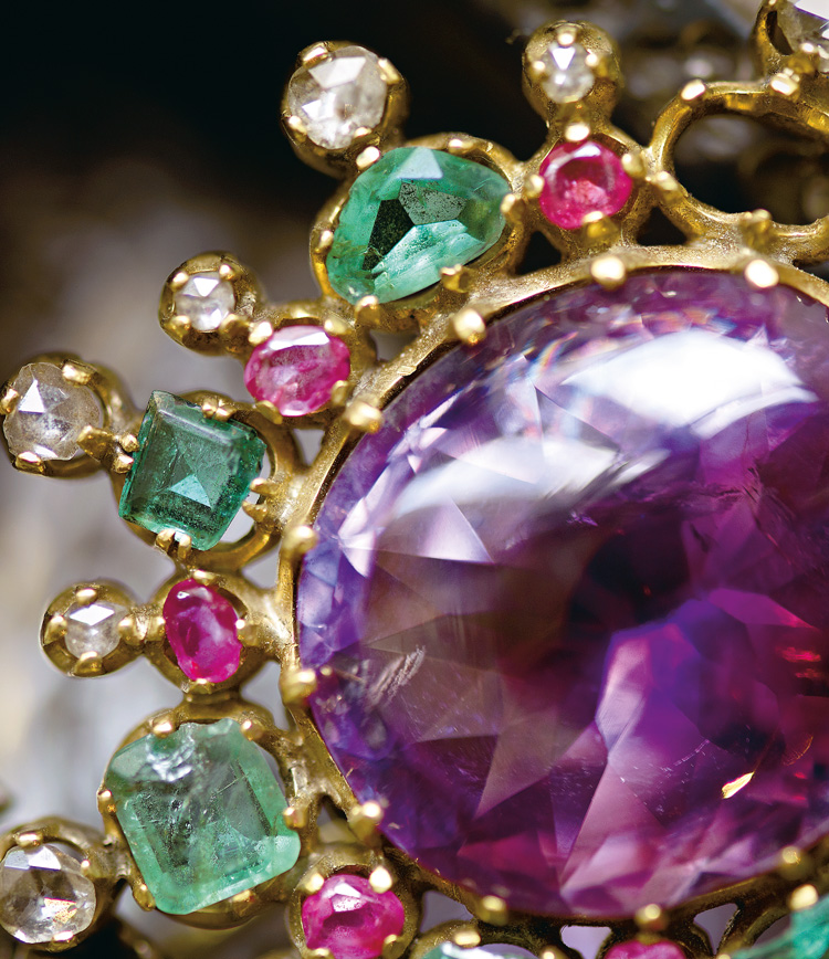 Брошь. Золото, алмазы, аметист, изумруды, рубины. XIX в. Из личных вещей семьи азербайджанского философа и драматурга Мирзы Фатали Ахундова.