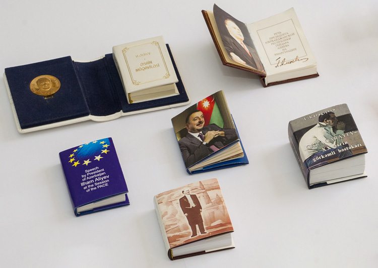 У одной из витрин всегда много посетителей: они стараются рассмотреть микрокниги. В СССР миниатюрными изданиями считались те, размер которых не превышал 100 x 100 миллиметров; Книга рекордов Гиннесса (в нее, кстати, занесен бакинский музей) учитывает лишь те, что не более 75 x 75 миллиметров. Но искусные мастера выпускают и совсем крохотные издания. Страницы японской книги «Цветы четырех времен года» размером 0,75 x 0,75 миллиметра пестрят изысканными рисунками, которые может рассмотреть лишь вооруженный увеличительным стеклом глаз; по лейпцигской «Азбуке» (2 x 3 миллиметра) могут учиться читать лилипуты. Это объекты чистого искусства – и неудивительно, что многие из них снабжены драгоценными футлярами и лупой: рассмотреть-то их каждому хочется.