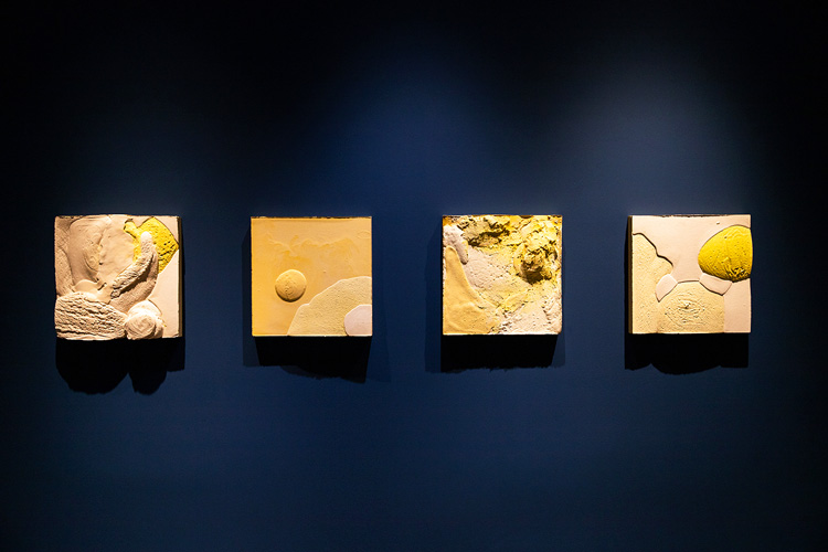 Видеопроекции на экранах транслируют напоминания об исторических истоках, тех самых коврах, каменных рельефах и шрифтах, тем более что в массе своей всё это стало основой представленных на выставке «упражнений» художников.
