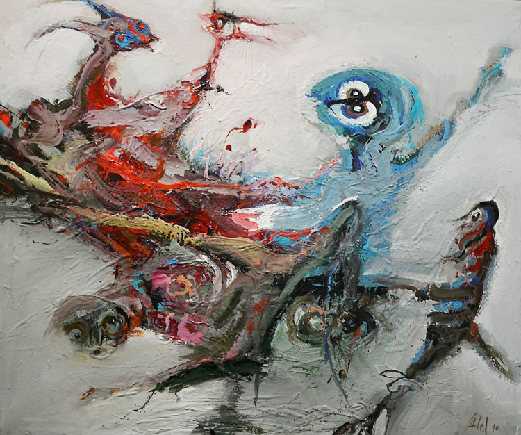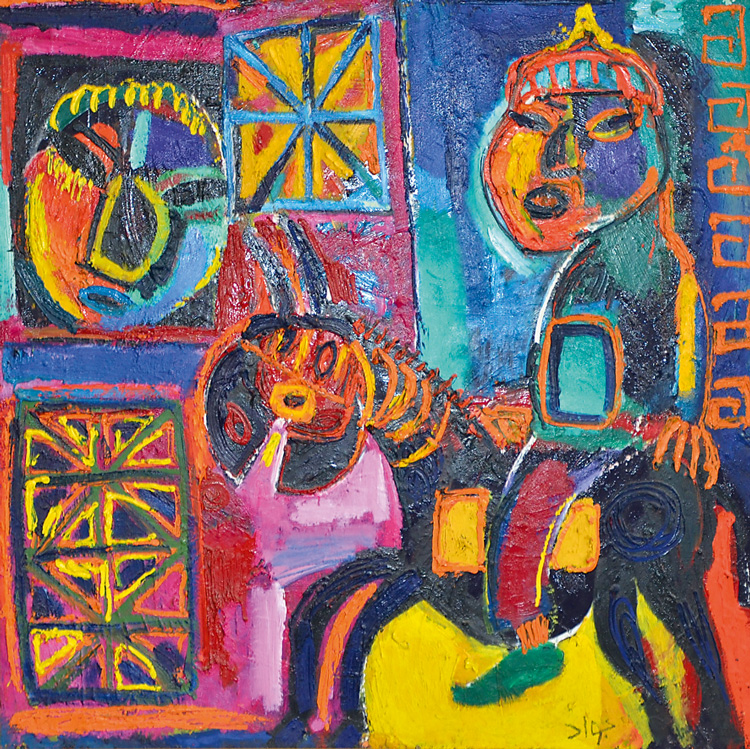 Галерее удалось свести в единую мелодию многоголосье художественных форм: здесь и насыщенный, радужный колорит в этнических мотивах Джавада Мирджавадова, и полуабстрактная графика Арифа Амирова и Юргена Тенца, и нежная акварельная дымка живописи Вахида Новрузова и Низакет Синановски, и ученически старательные зарисовки Сэнди Шейн. Бахруз Кенгерли рисует портреты ангелов – усталых ангелов, опустивших натруженные крылья, – в сдержанной жемчужно-переливчатой гамме. Контрапунктом им выступают юмористические персонажи Шамо: уж эти развеселые оранжевые и красные мужики устали не знают, так и норовят пуститься в пляс. Алим Рижинашвили от двухмерного пространства живописи переходит в объем, от картин к расписным кубам, соединяющим поп-артовскую плакатность с экспрессионистской напряженностью мускулистых фактурных тел; их эмоциональность уравновешена лаконичными скульптурами Ильгара Шейдаева, белым металлом, которому Шейдаев то придает антропоморфные формы, то оставляет чистоту и простоту геометрической абстракции.