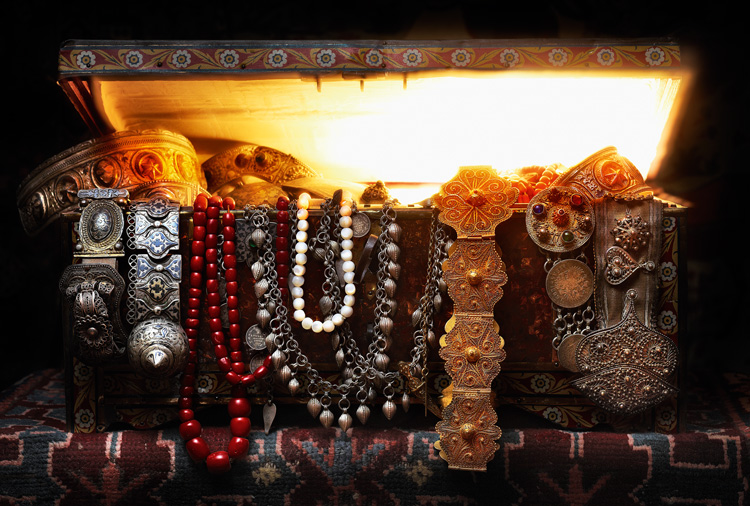 Два серебряных пояса, гравировка, чернь; коралловые бусы; серебряные подвески для женской одежды; перламутровые бусы; золотой пояс, накладная филигрань; серебряный с позолотой пояс, накладная филигрань; серебряный пояс, филигрань. Азербайджан, XIX – начало XX века.