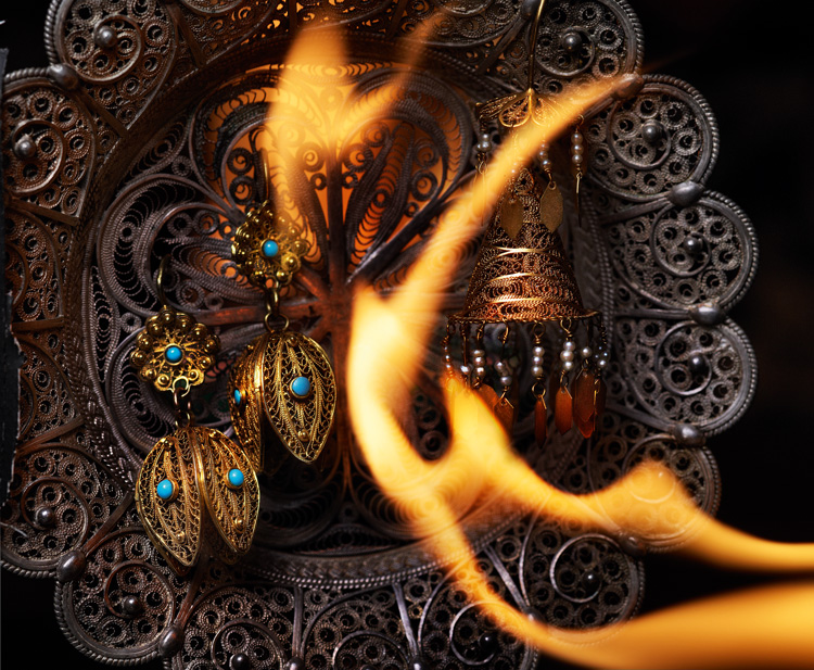 Брошь, золото, филигрань, стекло. Азербайджан, начало XX века.