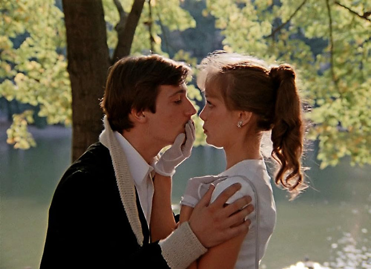 Шербур – порт рыбацкой Нормандии, где главной скрепой считают картину неизвестного: женщины на скалах ждут из шторма мужей. Там грубые камни, и грубоватые нравы, и в ливень сырые половицы первых этажей, и на мысу останки ржавых немецких укреплений от десанта союзников с моря. В 1964-м акварелист Деми совершил успешный ребрендинг этого края. С той поры Шербур – город, где все поют, порхают небесными ласточками, носят лиловые и фисташковые цвета и где любовь если и проигрывает, то не умирает никогда. По правде сказать, сколько фильм ни смотри, в памяти ничего не останется, кроме титульной мелодии Леграна, уклончивого стиля молодой Денев и вечного обмена оперными речитативами: «Женевьева!» – «Ги!» – «Женевьева!» – «Ги!» Над ним посмеивались, но прекраснодушный мирок Деми представлял собой настолько крупную мишень, да к тому же розовым наивом столь точно соответствовал щенячьей беззащитности первого чувства, что дразнить перестали. Десять лет спустя вышел русский ремейк «Зонтиков» – «Романс о влюбленных», там уже от акварельности не осталось и следа. Лирика стала эпосом, святость первого чувства зычно провозглашалась иерихонской трубой Александра Градского, подвигом ели всем глаза и уши, и ехидство комментаторов было гораздо слышнее. «Ромео, Гамлету – тем туго приходилось. А наш Сергей? Он призван выполнить свой долг. Высокий, чистый долг перед Отчизной. Как весел он, как радость бьет ключом! Прекрасно ты устроен, человек, когда любовь тебя преображает», – писала студентка И. Левченко в преядовитой рецензии для тульского «Молодого коммунара».