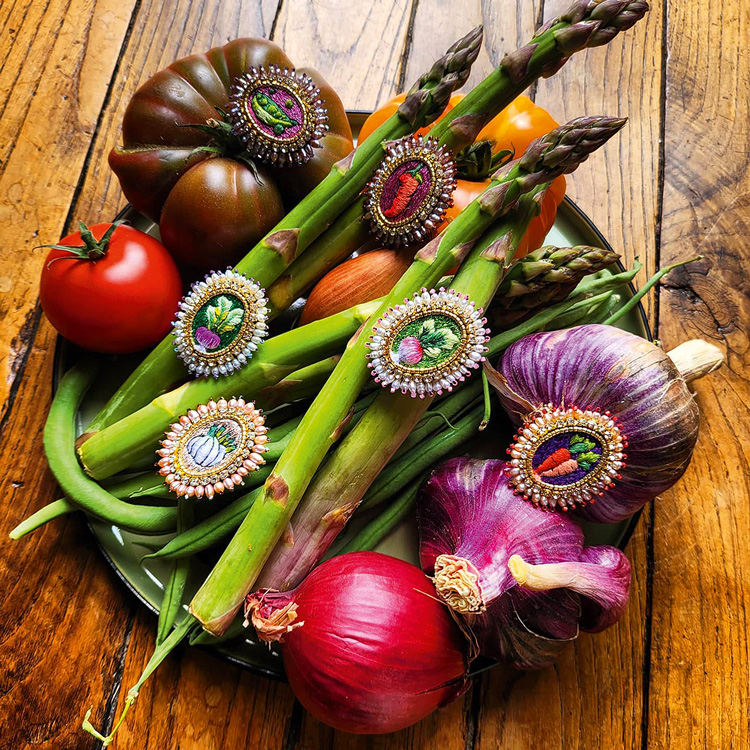 «Все, что я делаю, это ошибаюсь», – говорит Паскаль Ниве Бернетьер. Если считать ошибкой каждый ее дизайнерский проект, это, пожалуй, правда: она рисовала, вязала, расписывала керамику, а за последние 20 лет одну за другой создала три марки предметов декора. Céleste Mogador, названная в честь танцовщицы, поэтессы и куртизанки XIX века, – самая молодая из них: это царство ручной вышивки. Паскаль с детства обожает это искусство и называет его лучшим средством от тревожности: «Некоторые люди разгадывают судоку, другие занимаются бегом или йогой, а я вышиваю, пока не забудусь. Стежок за стежком мозг успокаивается, и я обретаю безмятежность». В результате на свет появляются серьги, сандалии и броши, в которых головка чеснока или стручок перца предстает драгоценным украшением. Возможно, тут не обошлось без корней: Бернетьер родилась и живет в Бретани, которая славится своей региональной вышивкой. Самоучкой освоив традиционные техники, Паскаль расширяет горизонты: три четверти вещей Céleste Mogador по-прежнему создают французские и бельгийские мастерицы, но недавно марка стала сотрудничать с общиной вышивальщиц из Руанды.