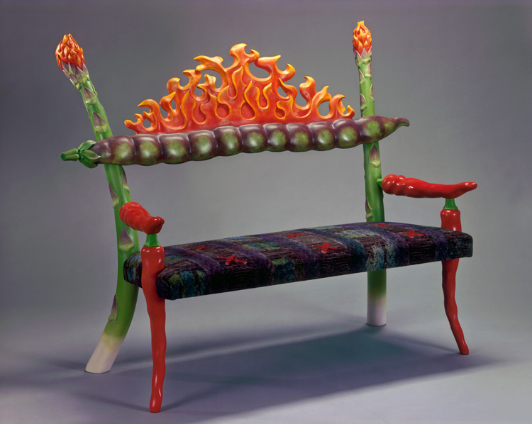 Окончив университет по специальности «теология», Крейг Натт понял, что высокое – высоким, а деньги зарабатывать надо. Так он оказался в мастерской по реставрации антикварной мебели, и эта случайность определила его жизнь. Восстанавливая старые диваны и комоды, он изучил традиционные стили и техники работы с деревом, оживил их причудливыми фантазиями – и получился один из самых оригинальных современных художников-краснодеревщиков. Натта вдохновляют овощи: огромная редиска-салатница, летающий межконтинентальный цукини, стул на ножках-побегах спаржи… В 2005 году, будучи уже заслуженным мастером, чьи работы представлены в музеях, Крейг помогал художникам, оставшимся без средств к существованию после урагана Катрина. Впечатленный их историями, он взял десятилетнюю творческую паузу, чтобы стать программным директором в фонде CERF+, который поддерживает ремесленников, попавших в беду. А потом вернулся к овощам. И это замечательно: кто еще способен, увидев в огороде стрелку зеленого лука, обнаружить в ней сходство с ножками виндзорского стула и придумать столик, позаимствовав дизайн столешницы из гробницы Тутанхамона?