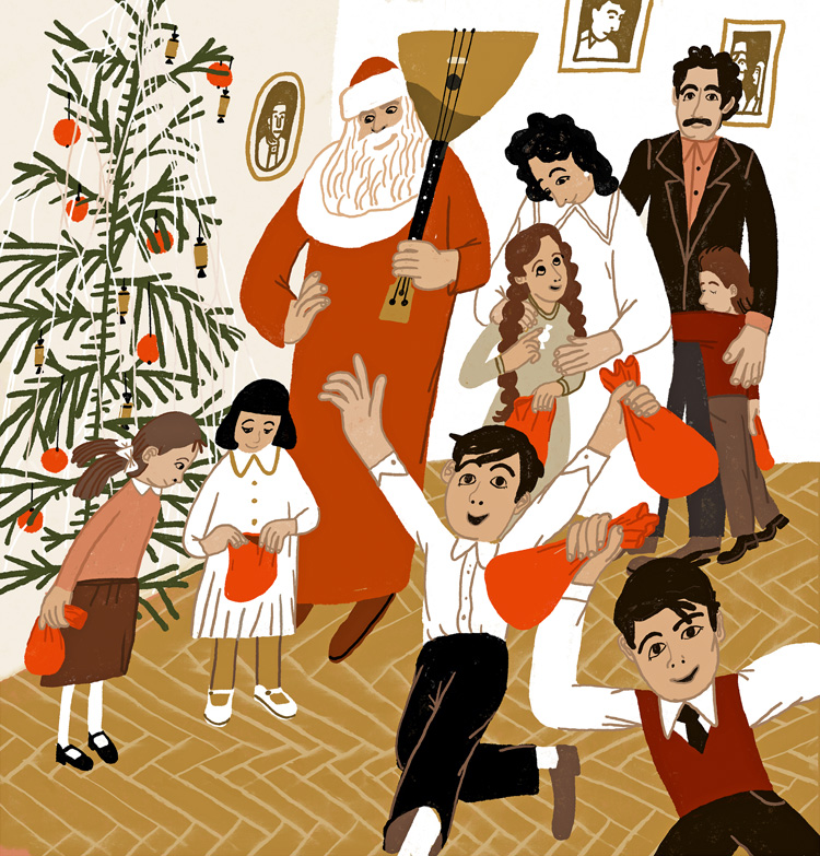Отец садился за рояль, а режиссер Али Усубов составлял хор из мальчиков и девочек. Затем Ниязи взмахивал золотой дирижерской палочкой (подарок на 60-летие от музыкантов его оркестра), и мы затягивали детские песни, плавно переходившие в танцы и сценки из мультфильмов. Тем временем Али Усубов переодевался в Деда Мороза, чтобы в конце представления вручить всем подарки – увесистые полотняные мешочки с шоколадками «Аленка», конфетами «Мишка», «Юбилейным» печеньем и мандаринами. Поскольку заранее рассчитать точное количество детей на празднике было невозможно, взрослые заготавливали подарки с запасом. В результате некоторые счастливцы уносили домой по два мешочка.