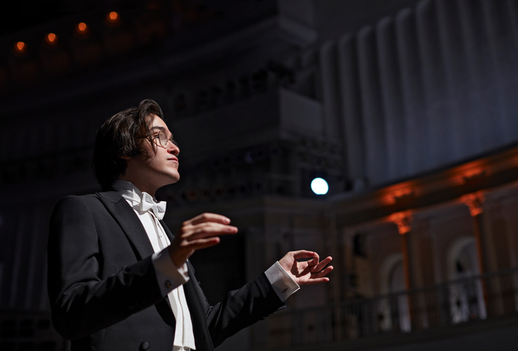 «Время на сцене течет иначе, чем в жизни, – говорит 23-летний Муртуза Бюльбюль, всматриваясь в потолок московской кофейни «Чайковский». – Часто не понимаешь, сколько уже выступаешь и сколько еще осталось». В этом году он оканчивает факультет симфонического и хорового дирижирования Московской консерватории (класс Вячеслава Валеева), и в его карьере все происходит стремительно, но своевременно. Дебютировав в 2015-м, за прошедшие десять лет он сотрудничал с лучшими коллективами России и Азербайджана. Выступал в Германии, Италии, Казахстане. Аккомпанировал Анне Нетребко и Дмитрию Ситковецкому, Эльчину Азизову, Елене Гвритишвили и Динаре Алиевой. Ассистировал дирижерам Сергею Скрипке и Федерико Санти, стажировался у Гюнтера Нойхольда в Вене и Иоганнеса Вильднера в Берлине.