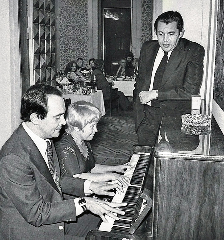 Впрочем, среди них все же встречались те, кого Екатерина была рада видеть всегда, – в их числе Муслим Магомаев, хотя их посиделки с Робертом Ивановичем часто затягивались до утра. «В него была влюблена моя двухлетняя сестра, он научил Ксению играть на пианино. Был такой период в начале 1970-х, когда он легко мог прийти без звонка. Бабушка сразу накрывала на стол, усаживала его обедать, потом они с папой и мамой шли в кабинет играть в нарды, а затем начиналась работа, и звучал его чудесный баритон». В репертуаре Магомаева корпус песен на стихи Рождественского занимает важнейшее место, и первыми их невольными слушателями нередко становились соседи: в доме на Новом Арбате, где жила семья Роберта Ивановича, были тонкие стены. «В доме внизу сидела лифтерша, которая всем всё рассказывала, – добавляет Екатерина. – Как только Муслим начинал петь, сразу раздавались звонки в дверь. Соседи приходили одолжить соль, спички, словом, выдумывали самые разные поводы, чтобы хоть одним глазком увидеть своего кумира.
