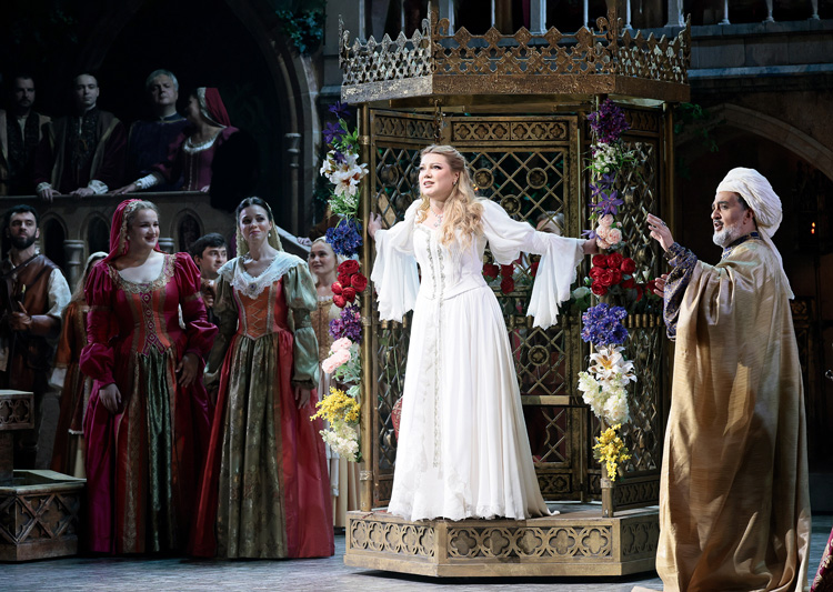 «Ну в какой опере вы видели работающий фонтан? – улыбается Эльчин. – Если его включить, журчание будет мешать и певцу, и оркестру, и зрителю. Хотя фонтан не бьет, вода в нем есть, и в одной из сцен Роберт брызгает ею на Водемона. На нескольких спектаклях он зачерпывал слишком много и обливал Водемона по-настоящему – это было очень зрелищно. Как раз поэтому для меня фонтан был важен: я представлял себе, как Роберт брызгает в Водемона, как подруги Иоланты балуются водой, она разливается по двору, и когда Иоланта идет к себе, остаются ее следы. Мне всегда важно сперва объяснить себе, а потом уже это увидит и почувствует зритель».