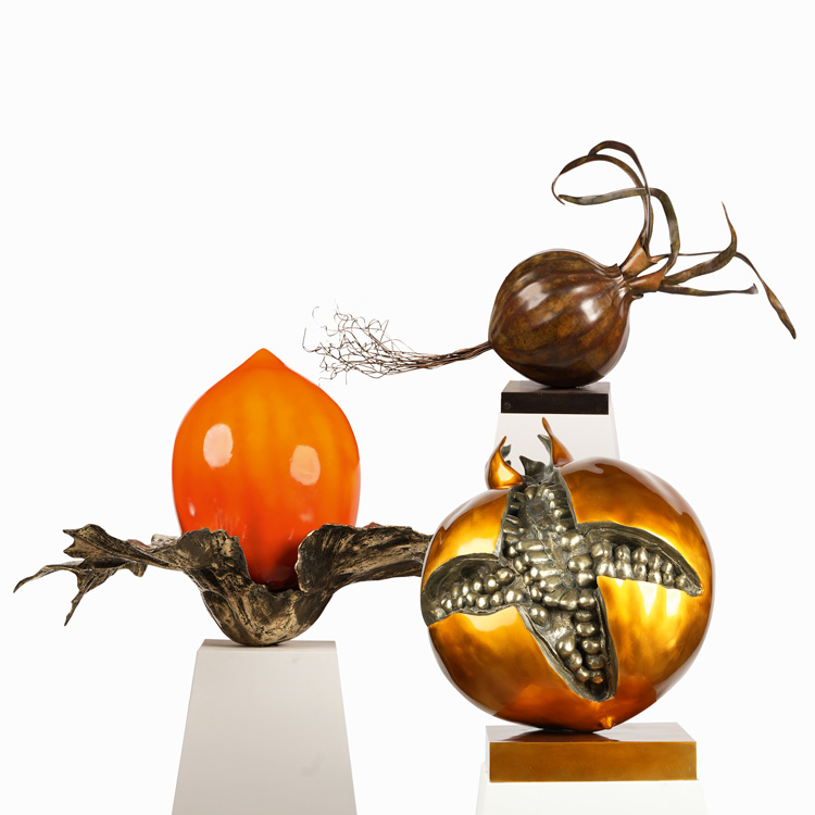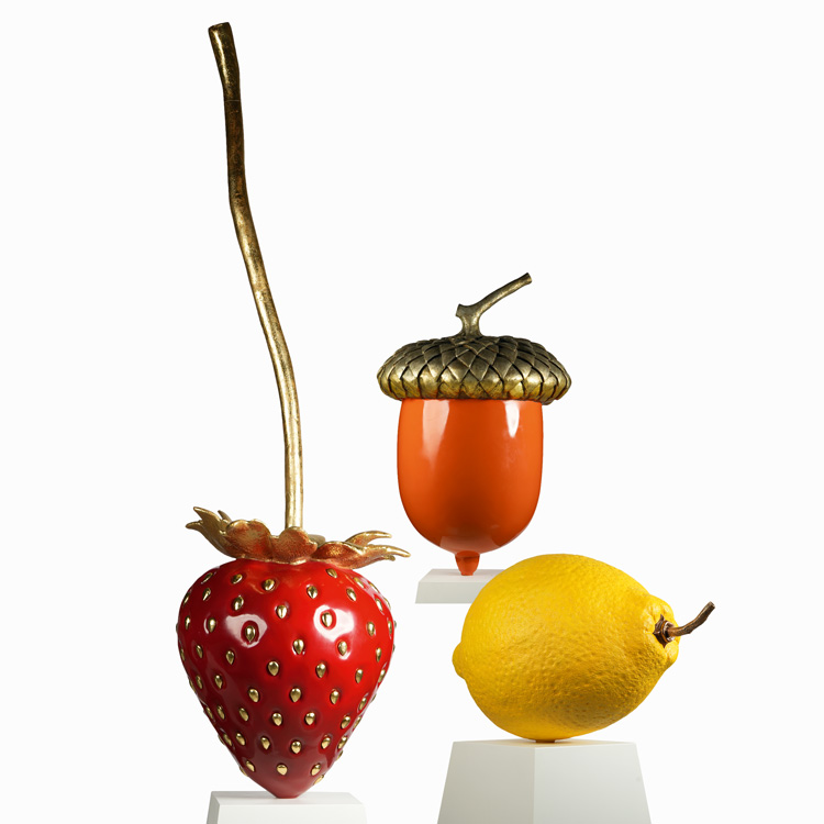 Д.К.: Они все технически сложны: лук, виноград, клубника – у каждого свои особенности, и ни один не похож на другой. Взять, например, желудь, очень важный плод в истории человечества: если мы его увеличим, то увидим в нем потрясающую, уникальную геометрию. Лимон – крайне важный плод для всего Средиземноморья. Гранат – еще один фрукт, который меня всегда очаровывал. Острый перец. Кстати, я заметил, что в Азербайджане его тоже используют очень активно. Я бы не сказал, что какой-то фрукт сложнее другого. Скорее всё зависит от техники, которую выбрал. Я работаю и с бронзой, и с мрамором, и с полихромной смолой, и с зеркальным алюминием.