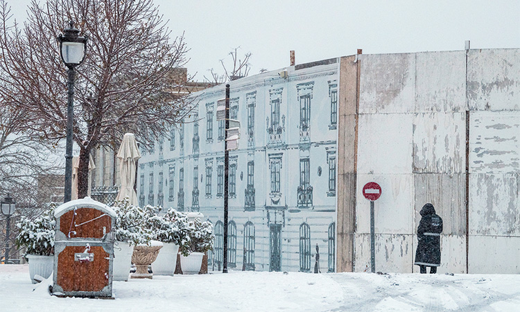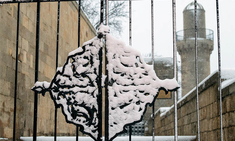 Снег, облепивший деревья, засыпавший дома и дороги, обычно делает городской пейзаж черно-белым: контрастным и холодным. В Баку же все иначе: здесь повсюду проступают теплые оттенки известняка, которым облицованы здания в центре.