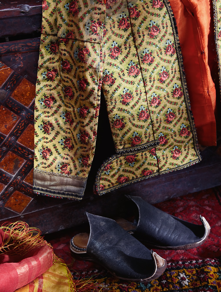 На фото: деревянный расписной сундук, женская шелковая праздничная кофта – ахалык