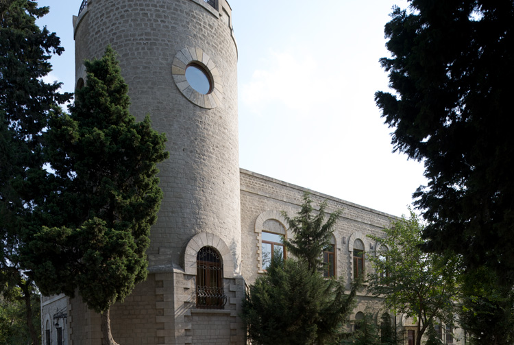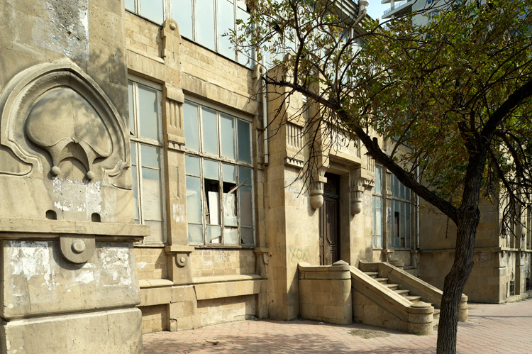 В 1910 году по соседству возник еще один дом, имеющий прямое отношение к деятельности общества. В память о рано умершем сыне (вспомним историю с «Исмаилией») другой состоятельный нефтепромышленник пожертвовал двадцать четыре тысячи рублей на постройку сиротского приюта. Имя архитектора, как, увы, нередко бывает, до нас не дошло, но он проявил немалую изобретательность, соединив в одном объеме форму характерного для Баку застекленного балкона-шушебенда с орнаментальной графикой модерна. Неизвестный зодчий противопоставил сильно выдвинутые, мощно трактованные каменные ризолиты сплошному остеклению центра и отметил вход крыльцом, выполненным из блоков местного камня.