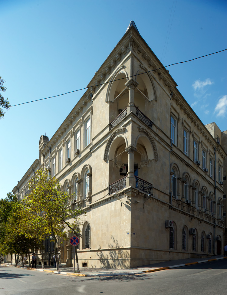 Место для конторы было выбрано в самом центре, где кипела деловая жизнь Баку и предпочитали селиться местные богачи. Нижний этаж выложен крупными квадрами облицовочного камня аглая, между которыми четко прочитываются швы. Ряды часто расположенных окон на каждом этаже имеют свой рисунок наличников.