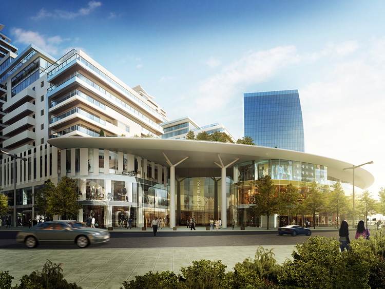 Несмотря на то что эти части спроектированы разными архитекторами (жилье – Broadway Malyan, офисы – Chapman Taylor), они образуют любопытный ансамбль. Внешний облик каждого элемента отвечает своей функции. Офисные башни более собранные и стройные, как и положено коммерческой недвижимости класса «А», где эффективность – одно из ключевых понятий. Жилые здания открываются в сторону моря каскадом террас, что создает более респектабельный образ. В свою очередь подиум жилого блока, повторяющий дугу дороги, как бы затягивает в вихрь «радости и покупок», столь активно пропагандируемый нынешними шопинг-моллами. Все вместе получается достаточно разнообразно и при общей глянцевости, стройности и четкости соединяет в себе элементы частного и публичного, домашней расслабленности и рабочей сосредоточенности, что отвечает представлению о современном стиле успешного образа жизни.