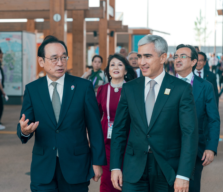 В национальный день Азербайджана на выставке под звуки государственных гимнов были подняты флаги Азербайджана и Японии. С приветственной речью выступил главный комиссар Японии по Expo 2025 Кодзи Ханеда. Он отметил, что Азербайджан играет важнейшую роль связующего звена между Азией и Европой. В ответном слове Анар Алакбаров напомнил о многолетней дружбе и сотрудничестве, сообщив, что Азербайджан стал первой страной, подписавшей соглашение об участии в Expo 2025, и что национальный павильон республики – один из самых посещаемых на выставке.