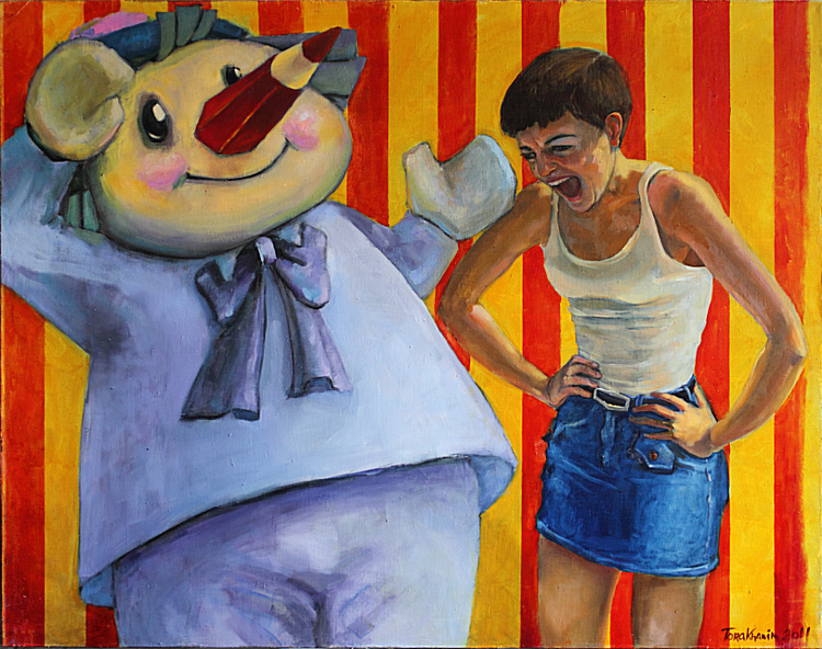 Тора создает свои работы с убийственной, разящей наповал иронией. При этом сама художница остается абсолютно серьезной. Нелепо выглядят только ее персонажи: разоблачившиеся нефтяники, обнажившие не столько тело, сколько сущность самого понятия «нефтедоллары»; печальные плюшевые люди, ищущие тепла и любви; дети, явившиеся прямиком из садистских стишков. Торино искусство можно назвать социальным, потому что художница удивительно тонко чувствует дух времени и умело фиксирует то пограничное состояние, в котором мы все живем. Но вместо того чтобы обреченно обозначать проблемы, она умело доводит их до крайней точки абсурда – до того момента, когда уже не страшно, а смешно.