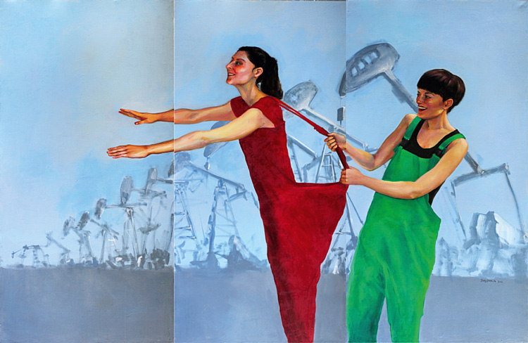 Само название экспозиции – «Двусмысленность» – подсказывает правильную интерпретацию работ Торы. Cтанковая живопись – самый гонимый жанр актуального искусства, творить в котором осмеливаются редкие профессионалы. Искушенный зритель наверняка поддастся искушению вписать работы Торы в рамки поп-арта, соц-арта, фотореализма и прочих художественных направлений конца ХХ века. Однако ее укорененные в настоящем дне сюжеты ускользают от любого однозначного определения.
