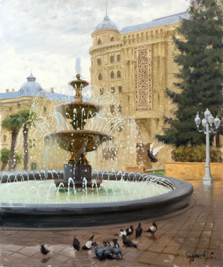 Изобразительными сюжетами, в частности, стали бакинский бульвар, прибрежная территория, Ичери шехер, исторические памятники, площадь Флага. На выставке, которая продлилась две недели, также представлена живопись художника Александра Покровского.