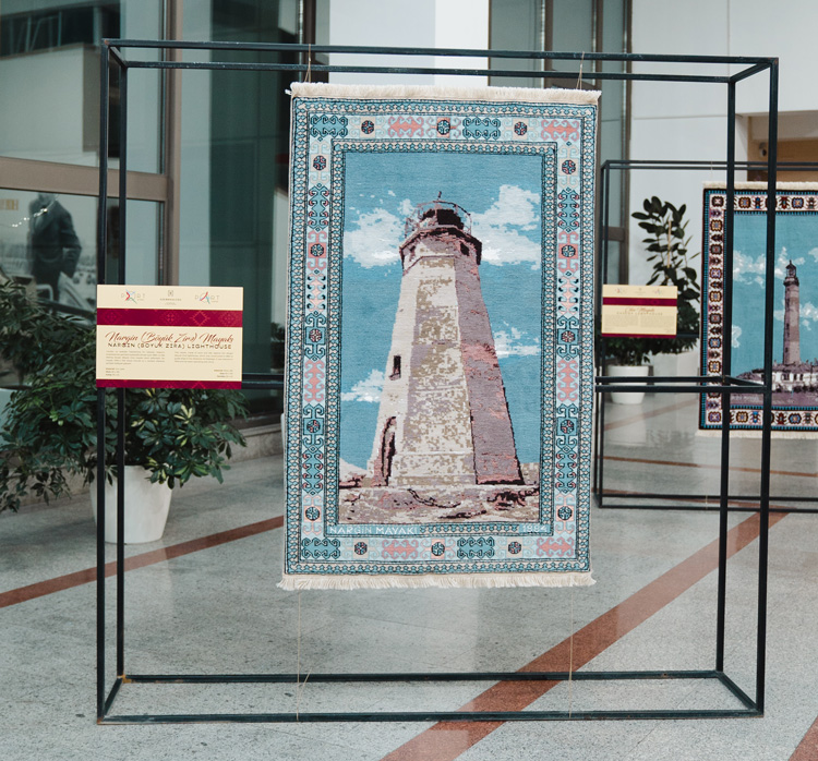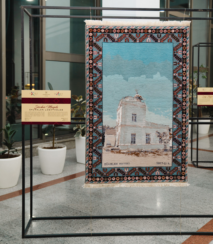 Последние полгода ткачихи были заняты выполнением специального заказа Бакинского порта – создавали ковры с изображениями восьми знаменитых азербайджанских маяков: «Амбуран», «Абшерон», «Шувелан», «Чилов», «Наргин (Бёюк-¬Зиря)», «Лянкяран», «Санги-Мугань» и «Кюр дили». Полотна по эскизам дизайнеров предприятия ткали в смешанной технике из окрашенных вручную шерсти и шелка. Срезанные со станка ковры доводили до совершенства с помощью особой обработки: на поверхности появлялся 3D-эффект, шерсть становилась матовой, шелк приобретал дополнительный блеск.