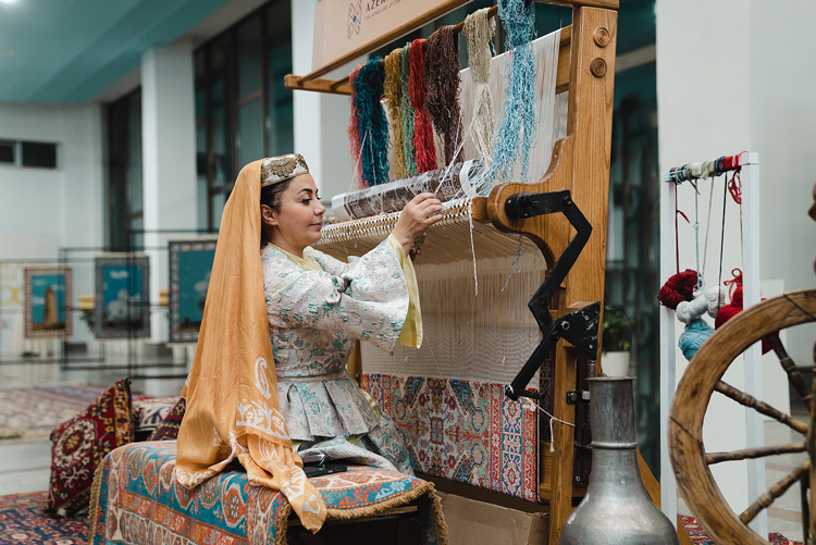 На предприятии ковры изготавливают строго в соответствии с традициями школ ковроткачества, разрабатывают новые орнаменты на основе древних великих ковров, хранящихся в музеях мира. Работы мастериц «Азерхалчи», такие как ковры «Челеби», «Челеби барда» и «Гасымушагы», можно увидеть на выставке.