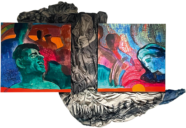Одноименной проекту работой «Гейзер» художница с метамодернистским подходом Назрин Мамедова обращается к абстрактному языку, фиксируя внезапный выброс накопленной энергии. Картина перекликается с изображением ландшафта Абшерона, переосмысленного художницей через цвет и форму.