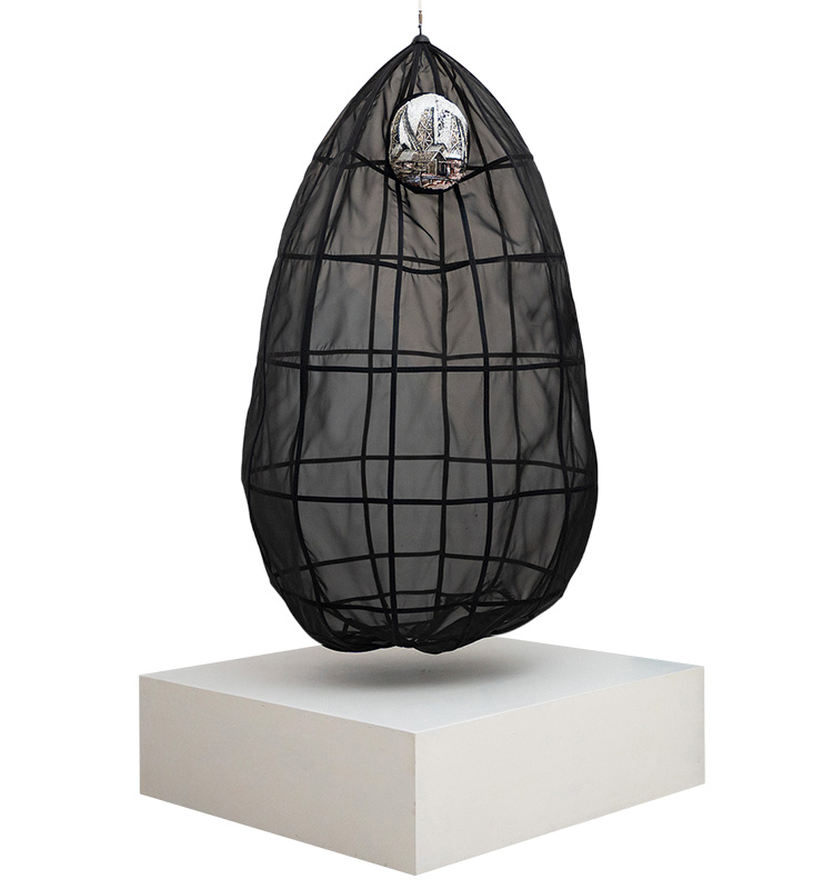 Фидан Садиг, дизайнер и основатель независимого бренда одежды FIDAN SADIG, в феминистской инсталляции «Без названия» напомнила о женщинах, чье присутствие в эпоху нефтяного бума было почти незаметно и чей голос был почти не слышен. Кокон из полупрозрачной ткани скрывает тело, лицо подменяет вышивка, изображающая нефтяные промыслы. Эта деталь фиксирует след индустрии и истории на теле женщины