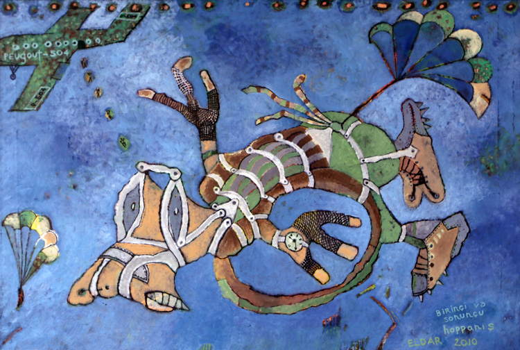 Автор дизайна музея и собиратель музейной коллекции известный художник Алтай Садыхзаде сам очень любит небо. На его полотнах разных лет изображены хитроумные летательные объекты – футуристические и ностальгические одновременно. И в собранной им коллекции он всячески поощрял тему полетов – во сне и наяву. Помимо его собственных летучих конструкций здесь представлены летательные аппараты и портреты летчиков Аги Усеинова, фантастические сюжеты Эльдара Мамедова, волшебные композиции Али Ибадуллаева.