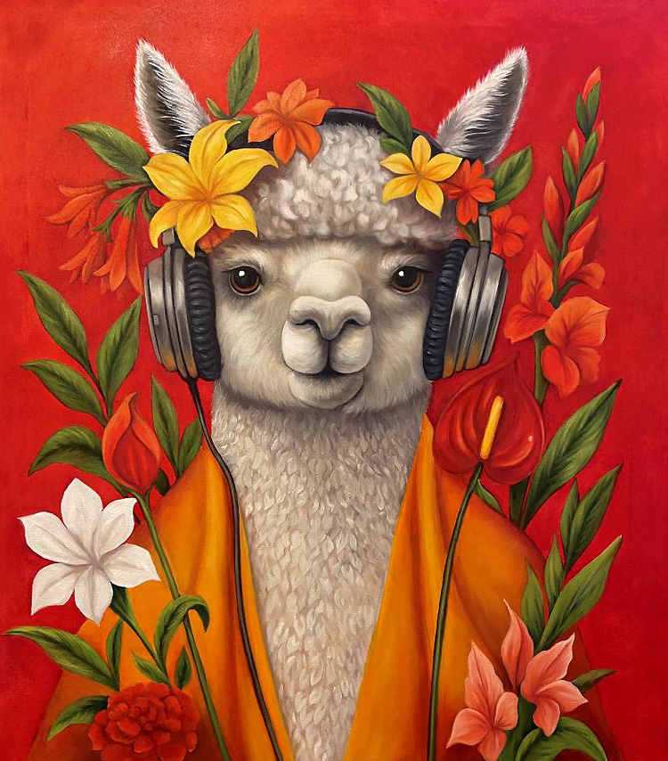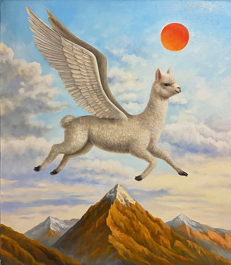 Соль Алехо неслучайно населяет свои картины альпаками. Эти симпатичные, кроткие животные из семейства верблюдовых издревле обитают на горных склонах Анд. Альпаки, одомашненные много тысяч лет назад местными племенами индейцев, стали частью перуанской культуры, а их мягкая шерсть – символом тепла и уюта.
