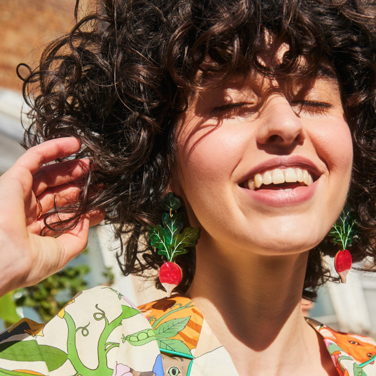 Ну а сразу после заботы о людях идет забота о природе. Студия использует только «зеленую электроэнергию», все офисные закупки делаются у этичных поставщиков и по возможности из вторично переработанных материалов. Вещи продаются в биоразлагаемой упаковке, а если серьга или кольцо повредятся, бренд их починит. «Если бы мне предложили суперспособность, я бы хотела, чтобы это была трансформация предметов: тогда я могла бы создавать красивые экологичные материалы исключительно из отходов», – мечтает Ханна. А пока украшения Wolf & Moon делаются из вторично переработанного акрила, этично выращенного новозеландского перламутра и древесины, сертифицированной Лесным попечительским советом (FSC).
