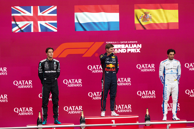 Безоговорочно и безупречно лидировал в гонке Макс Ферстаппен. И хотя стартовавшего вторым Карлоса Сайнса на Williams смог опередить первый номер Mercedes Джордж Расселл, третью позицию Карлос отстоял до самого финиша. Команда Williams сейчас переживает затяжной кризис, ее пилоты не поднимались на подиум с 2021 года, поэтому радость от успеха Сайнса зашкаливала даже у сторонних наблюдателей. Джордж Расселл занял второе место, проведя безупречную гонку на Mercedes, несмотря на недомогание. Победитель Макс Ферстаппен собрал в Баку так называемый Большой шлем (поул-позиция, все круги лидирования и лучший круг). Эмоций ему и зрителям добавил тот факт, что сезон для великого пилота выдался очень непростым: Red Bull сейчас не в победной форме, и каждый успех достается команде не благодаря, а вопреки.