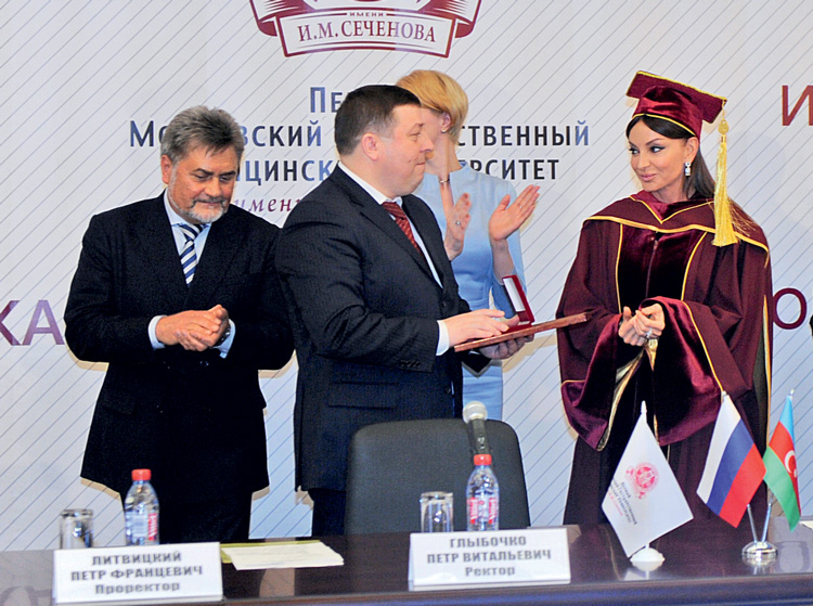 В этот же день Мехрибан Алиевой был вручен Памятный знак и диплом «Почетный профессор Первого Московского государственного медицинского университета имени И. М. Сеченова». Торжественная церемония вручения состоялась в здании Музея истории медицины, расположенном в МГМУ, выпускницей которого является Первая леди Азербайджана. Ректор МГМУ Петр Глыбочко вручил ей диплом «Почетный профессор Первого Московского государственного медицинского университета имени И. М. Сеченова», Памятный знак и мантию профессора.