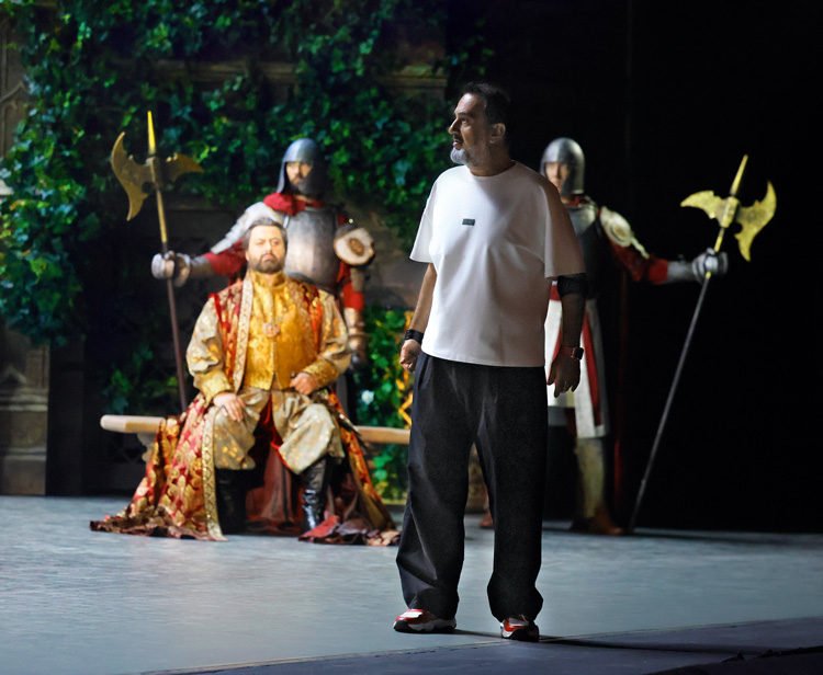 «Ну в какой опере вы видели работающий фонтан? – улыбается Эльчин. – Если его включить, журчание будет мешать и певцу, и оркестру, и зрителю. Хотя фонтан не бьет, вода в нем есть, и в одной из сцен Роберт брызгает ею на Водемона. На нескольких спектаклях он зачерпывал слишком много и обливал Водемона по-настоящему – это было очень зрелищно. Как раз поэтому для меня фонтан был важен: я представлял себе, как Роберт брызгает в Водемона, как подруги Иоланты балуются водой, она разливается по двору, и когда Иоланта идет к себе, остаются ее следы. Мне всегда важно сперва объяснить себе, а потом уже это увидит и почувствует зритель».