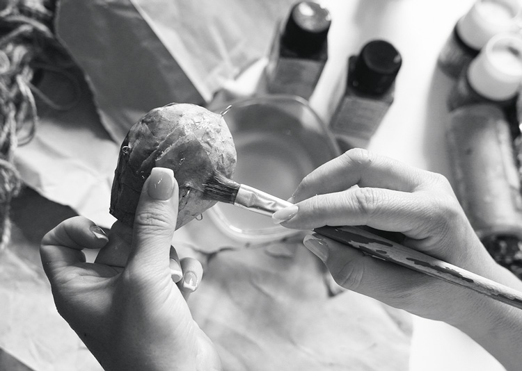 Прежде чем стать игрушечных дел мастерицей, Диана работала фотографом, журналистом, телевизионщиком, редактором. По первому образованию она художник-график, окончила бакинскую Академию художеств. «У меня были крутые преподаватели, они мне много дали. Дипломным руководителем стал замечательный художник-график Нусрат Гаджиев, он научил меня визуально выражать эмоции героев, а еще привил любовь к джазу», – вспоминает она. Джаз ведь – это импровизация. То, что Диана делает с бумагой, ватой, кисточками, создавая очередную елочную игрушку, – часто тоже импровизация. Она никогда не рисует эскизов – начинает сразу с подготовки каркаса, а дальше – как получится.