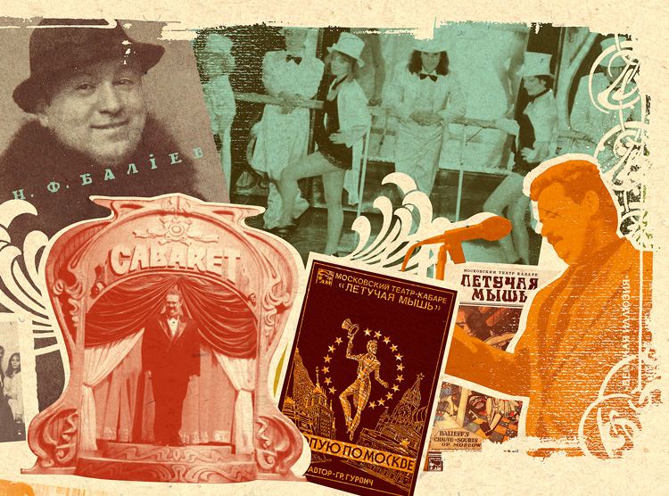 Театр «Летучая мышь» происходит из того же источника, что и капустники. Вернемся снова в 90-е годы XIX века. Художественный театр Станиславского и Немировича-Данченко стал главным театром страны, вместе с тем главными сделались и его капустники. Ими охотно и активно занимался Никита Балиев, влюбленный в МХТ фанатично, преданно и безответно. В нагрузку к большому пожертвованию его приняли в труппу, но за долгие годы позволили выйти на сцену только несколько раз в роли Хлеба в метерлинковской «Синей птице». В других ролях сильный кавказский акцент и невеликое актерское дарование пригодиться не могли. Постепенно от организации капустников Балиев перешел к мысли о театре-кабаре, где зрители сидели бы за столиками, а на сцене происходило нечто капустнообразное. Поговаривают, что название «Летучая мышь» родилось как противопоставление двум летучим символам МХТ – Синей птице и Чайке. Маленький театр стал чем-то средним между актерским клубом, где можно было выпить после спектакля, и театром сатирических миниатюр. Капустники и «Летучая мышь» стали легендой.
