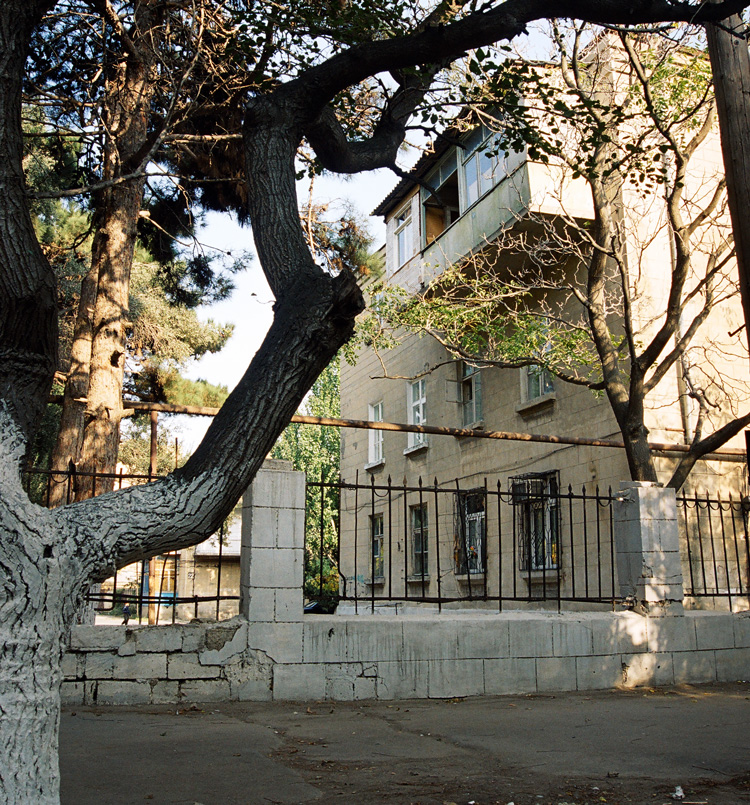 В.Ф.: Очень вкусно поесть. Потом мне очень по-бакински сказали: «Проси что хочешь!». Я сказал, что хочу съездить туда, где вырос. Потом много фотографировал там и в крепости. Вот посмотрите на снимок: старые двери с разными створками. Это тоже очень по-бакински: заменили одну половину двери, а другую оставили. Зачем трогать – она еще целая. Зачем тратить время, которое можно посвятить гораздо более важным вещам: прогулкам, например, или разговорам по душам. Вот еще фотография: пара дряхлых стульев во дворе накрепко прибита к стене – забронированные места! Именно два стула! Я давно уже понял, что Баку никогда не войдет в унылый список городов, где живут одиночки: ведь там всегда тебе найдется собеседник!