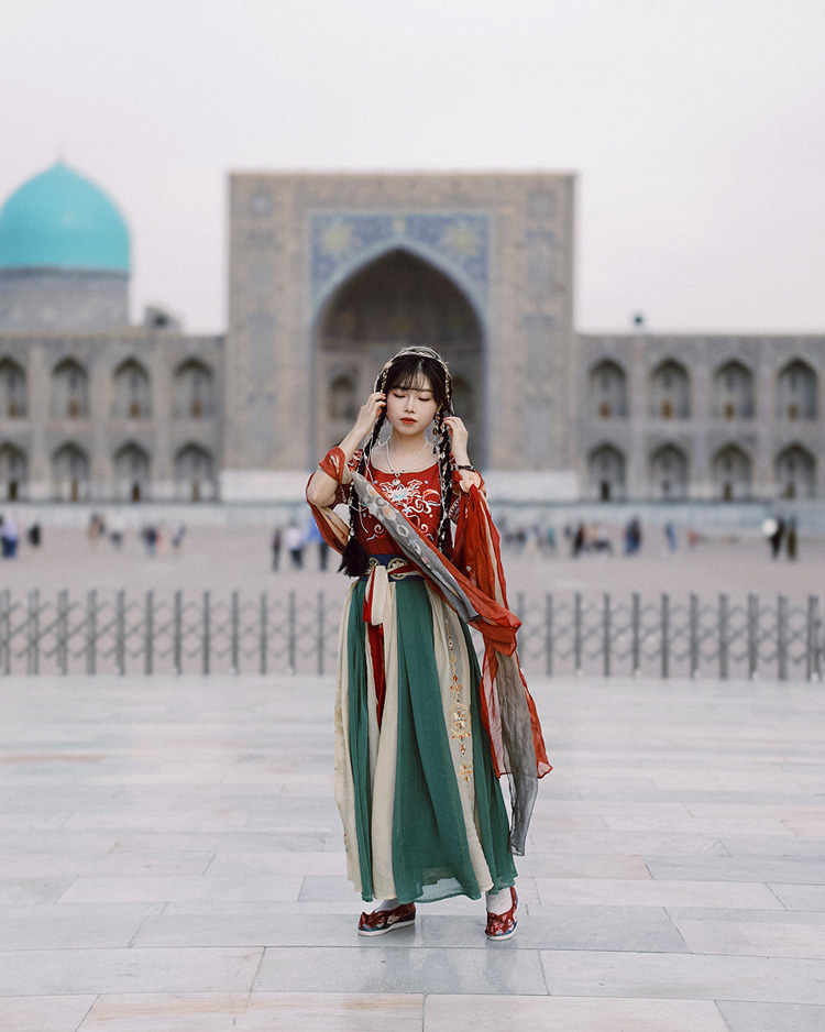 Это китаянка Люсия. Я случайно встретила ее в Самарканде. В своем традиционном наряде она выглядела как часть архитектурного ансамбля площади Регистан, и я не смогла пройти мимо.