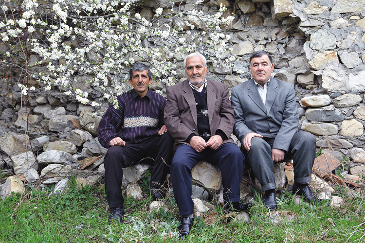 Гадир Шафиев (в центре) – потомственный красильщик, его семья с незапамятных времен занималась окрашиванием шелковых платков. Он смешивает краски, придумывает новые сочетания, красит. Аббасали Талыбов (слева) тоже занимается ремеслом с детства. В мастерской он отвечает за нанесение узоров и моет шелковые платки после окрашивания. Низами Мамедов (справа), как говорит он сам, – «смотрящий мастер». Когда в Баскале была фабрика, он работал на ней начальником цеха, а теперь выполняет административные функции в частной мастерской.