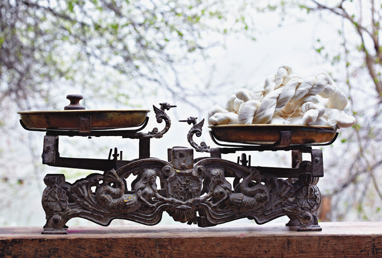 На один кялагаи шло примерно 120 граммов шелковых нитей, так что из одного килограмма получалось примерно семь платков, каждый из которых был полтора метра в длину и столько же в ширину. Даже в советские времена шелк в Баскале взвешивали на старых весах 1909 года. Их принес на фабрику мастер Низами Мамедов – весы достались ему от деда. Сейчас весы не используются: шелк в Баскале больше не ткут – белые платки привозят из Шеки, а здесь только красят.