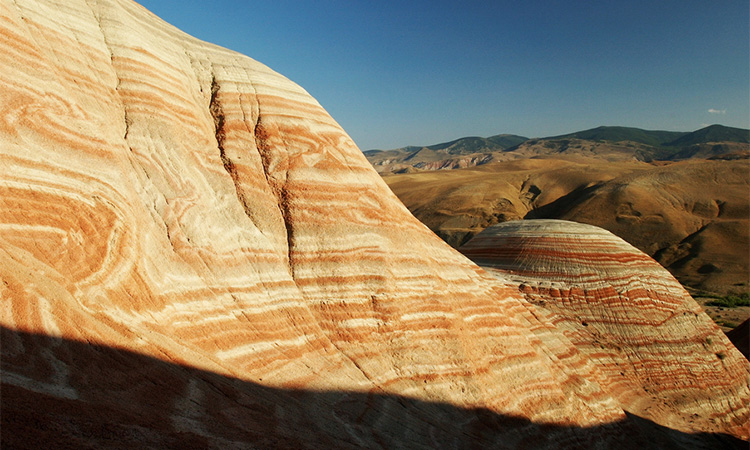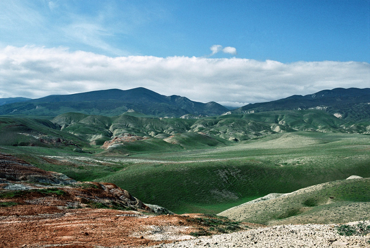 Горы начинаются здесь, в 70 километрах от Баку. У поселка Гилязи нужно свернуть с трассы налево, и через десять минут вы увидите их. Хызы – горы необыкновенные, как будто леденцовые: самой природой раскрашенные в розовые, белые, зеленые полоски. Похожую расцветку геологических пород, говорят, можно встретить в одной еще только калифорнийской Долине смерти.