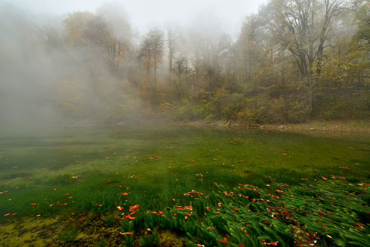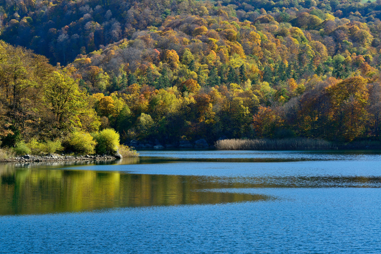 Каким откроется вам озеро, зависит от погоды: может быть изумрудным, а может и черным – согласно своему названию. Вода в нем очень чистая, а в центре – там, где холоднее всего, – кристально-прозрачная. Гаранохур плотным строем окружают буки, стройные стволы и желто-красно-зеленые кроны отражаются на гладкой поверхности озера, как в зеркале, удваивая его красоту. А опавшие в воду листья образуют пестрые острова.