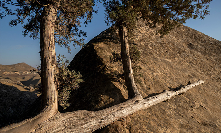 «Жизнь так сложилась, что я всегда дружил с археологами и в Гобустан возвращался два раза: сперва в 1980-х годах, а потом в 2015-м – два пришествия». Мы с Фикретом Абдуллаевым стоим на верхней террасе Беюкдаша и, глядя на древний Каспий, рассуждаем о том, что вдохновляло людей на протяжении многих столетий высекать на известняковых скалах изображения-петроглифы. Фикрет муаллим до недавнего времени был хранителем Национального историко-культурного заповедника «Гобустан»: трудно найти лучшего проводника по горным тропам и каменистым ущельям. В солнечный день начала лета территория заповедника еще помнит весеннюю прохладу. Пахнет чабрецом и полынью, сквозь глинистую почву в расщелинах пробивается зелень. В тени скал отцветают маки и ирисы, алеют кусты дикого граната, поспевает мелкоплодная вишня. Хозяйка чайханы подает чай, заваренный на местных травах.