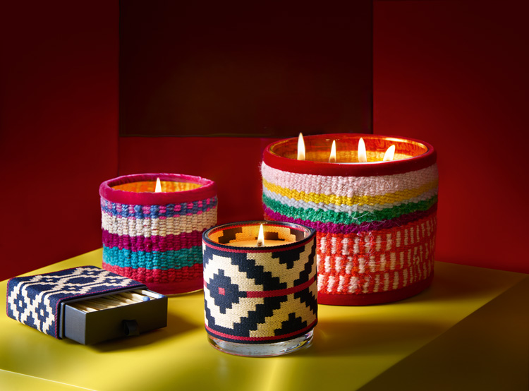 Свечи Chelebi x Bahia Mala – дань уважения национальным традициям ковроткачества. Каждый чехол соткан вручную из нитей, окрашенных натуральными красителями. Пламя освещает ткань ярко, как солнце, и аромат становится почти осязаемым. Каждая свеча будит воспоминания. В Horizon ноты кедра, амбры и эвкалипта дополнены специями, кожей и пачули, напоминая о восточном базаре. Свеча Nomad с яркой цитрусовой нотой мысленно переносит в лянкяранские лимонные сады. А изысканный древесный аромат Saffron Stripe заставляет вспомнить об отдыхе в горном лесу.