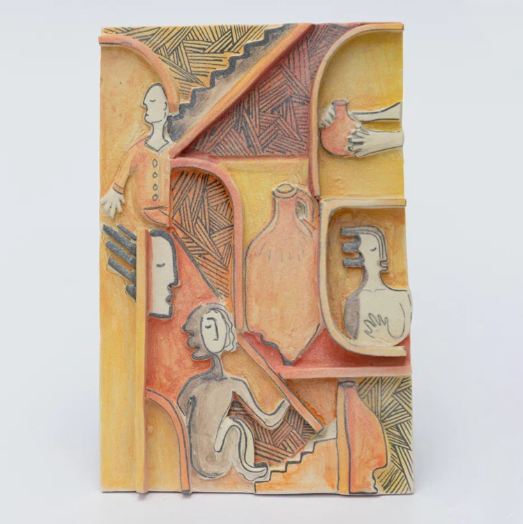 На стенах и на полках в мастерской разместились керамические скульптуры – их тоже делала Умай. Она продолжает рисовать, у нее масса эскизов («Еще бы взять где-то такую же массу времени, чтобы эти эскизы воплотить!»). Некоторые скульптуры напоминают кубические работы Брака, только в объеме. «Я очень люблю кубизм, – признается Умай. – Раньше почти все, что делала, было вдохновлено именно кубизмом. Сейчас, видимо, что-то внутри изменилось, линии стали более плавными. Интересно вообще, как связано то, что чувствуешь, с тем, что руки делают. Может, я расту?»
