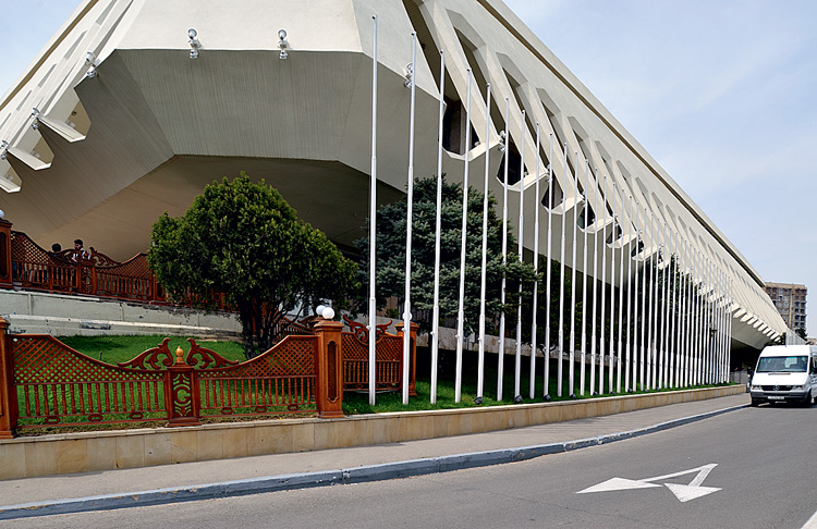 Главная концертная площадка страны, открывшаяся концертом Муслима Магомаева (тогда она еще звалась Дворцом Ленина), а сегодня также служащая местом проведения государственных мероприятий, примечательна и в архитектурном отношении. Это весьма необычный гибрид двух версий советского модернизма. В разрезе здание напоминает прозрачную и летящую архитектуру «оттепели», ярчайшим образцом которой является кинотеатр «Пушкинский» в Москве. Но анфас – это уже скорее строгий и холодный Кремлевский дворец съездов благодаря гербу и характерному ритму пилонов. Изначально пилонов не было. Возникли они лишь потому, что чиновники испугались, выдержит ли нагрузку лихо вывешенный консольный объем. Обиженные недоверием авторы позволили себе изящную шутку: подсекли пилоны так, что казалось, будто они не касаются земли. Потом, правда, эту шутку ликвидировали (как и герб), само здание переименовали и переоблицевали, но эффектный изгиб пилонов остался как напоминание о том, что даже в однопартийном СССР Азербайджан мог позволить себе отклонения от генеральной линии партии.