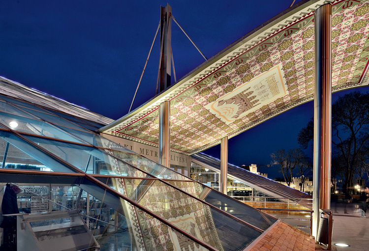 Бакинский ответ пирамиде Лувра в Париже – бескомпромиссная новизна в контрасте с чарующей древностью. Как и пирамида, станция вызвала бурю споров: ее дразнят «парником» и говорят, что лучше было бы открыть вид на стены крепости. Насчет масштабов сооружения я бы тоже поспорил, впрочем, такова миссия современной архитектуры (как и современного искусства): не услаждать взоры, а будоражить мысль. Примечательно, что станция не повторяет пирамиду Йо Минг Пея: у нее одна сторона вместо четырех, а козырек над входом «развевается», как ковер-самолет на ветру. Эта одна из первых станций бакинского метро (открыта в 1967 году, раньше называлась «Бакы Совети») была реконструирована и в подземной части, после чего, по словам сотрудников, здесь «стало легче дышать и веселее работать».