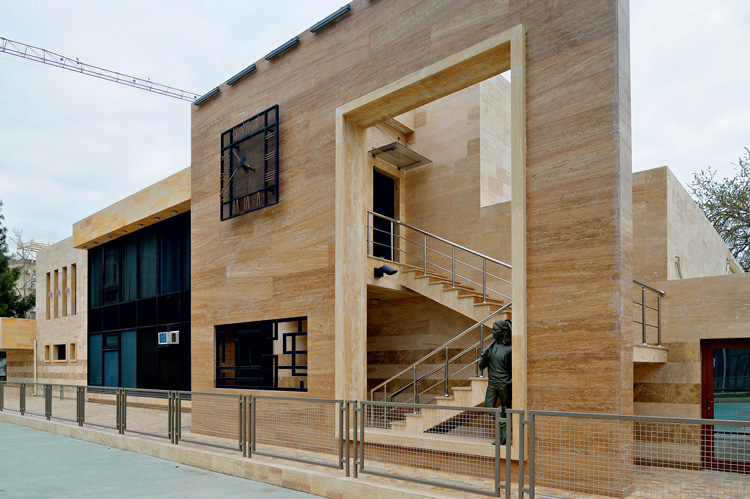 В 1929 году второй (после Корбюзье) гений ХХ века Мис ван дер Роэ построил в Барселоне ко Всемирной выставке павильон Германии. Это своего рода «черный квадрат» архитектуры. Профессионалы считают его главным зданием века, публика же в упор не понимает, что тут такого. Пять стен, крыша, вода, женщина голая внутри… Все остальное – пропорции. Спустя ровно 80 лет на бакинском бульваре появился теннисный клуб. Деталей здесь побольше, функция поочевиднее, но всем своим гармоническим строем, теплым камнем, скульптурой, а главное, каким-то невероятным духом беспечности и неги он напоминает прямого потомка барселонского павильона. Удивительно, как тонко пойманы и развиты здесь две темы великого Миса: разомкнутость архитектуры в пространство, что символизирует пустота за порталом главного фасада, и ее соединение с природой, об этом – дерево, ставшее смысловым центром уютного внутреннего дворика.