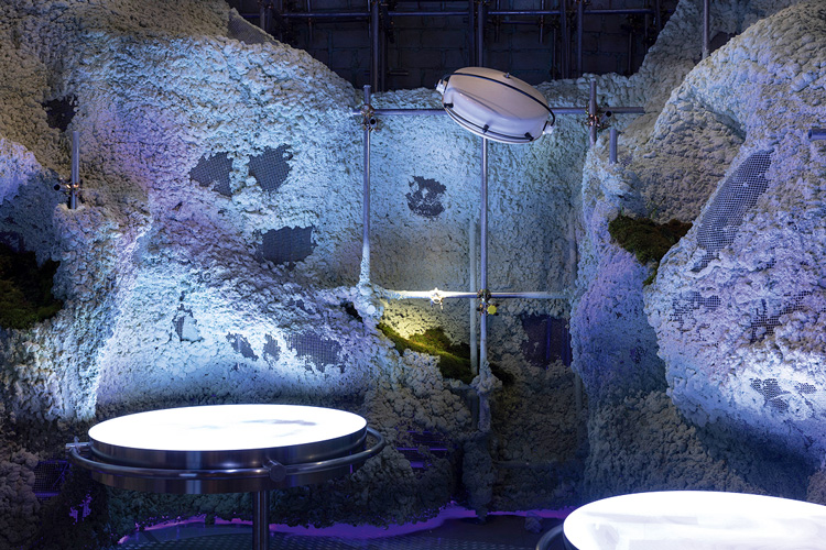 Тему постчеловеческого будущего продолжает проект Вини Мааса и Федерико Диаса «Биотопия» (Biotopia), предлагающий зрителю прототип модуля новой архитектуры. Городская «биотопическая» среда будет расти подобно саду или лесу и освещаться биолюминесцентными фонарями, работающими на энергии брожения. В основе работы лежит динамический биоматериал – губка, которая охлаждает, фильтрует воду, генерирует энергию, служит домом для бактерий, грибов и водорослей и адаптируется к окружающей среде как живой организм.