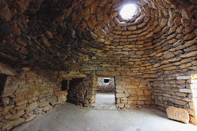 Сейчас их называют «саманлыг» и используют как хранилища: сена, зерна… Но еще 2000–3000 лет назад так выглядели жилые постройки. Их строили по принципу шалаша, только не из веток, а из известняка. При строительстве практически не использовался соединительный раствор. Камень держал камень, а в основе купола устанавливались огромные перекрытия – зеверден. Они были такими большими, что даже не помещались в арбу. После того как устанавливали зеверден, считалось, что дом построен. В честь этого события устраивали праздник (байрам). Клали под камень деньги, ставили хончу, резали барашка…